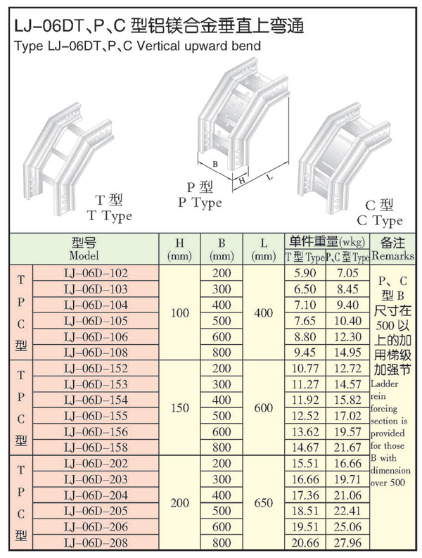 LJ-06DT、P、C型鋁鎂合金垂直上彎通