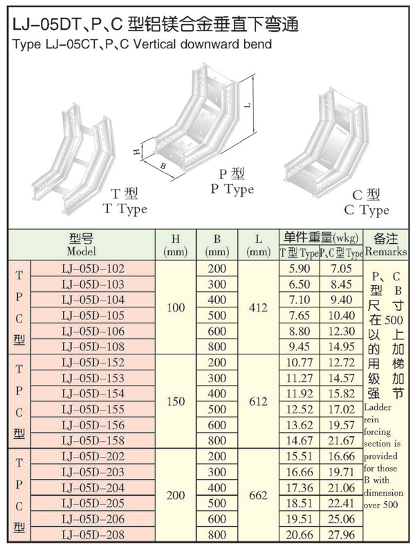 LJ-05DT、P、C型鋁鎂合金垂直下彎通
