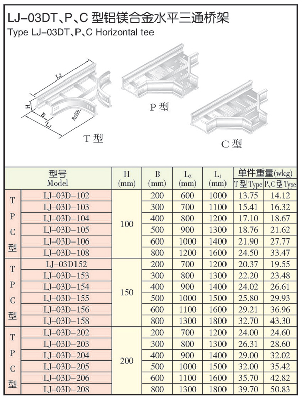 LJ-03DT、P、C型鋁鎂合金水平三通橋架