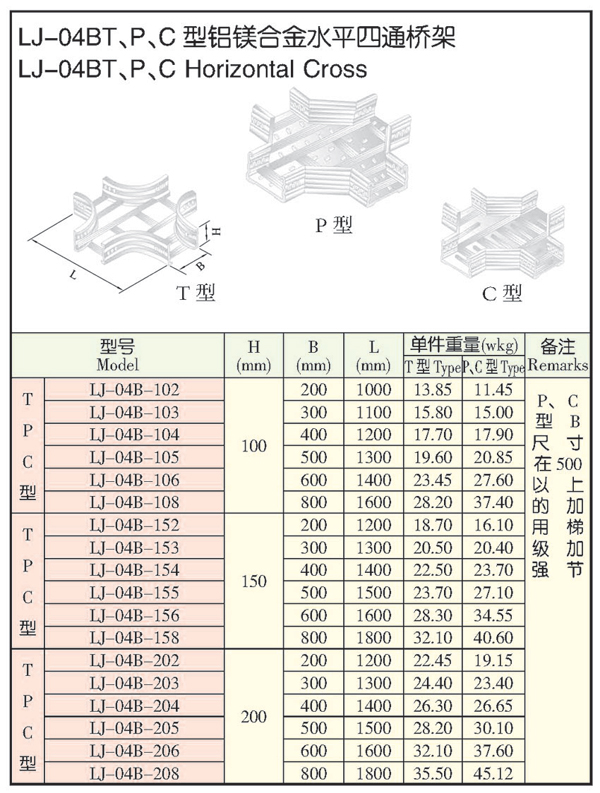 LJ-04BT、P、C型鋁鎂合金水平四通橋架
