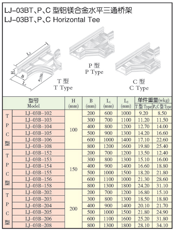 LJ-03BT、P、C型鋁鎂合金水平三通橋架