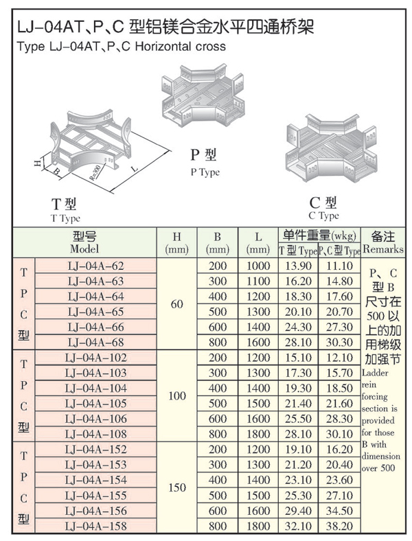 LJ-04AT、P、C型鋁鎂合金水平四通橋架