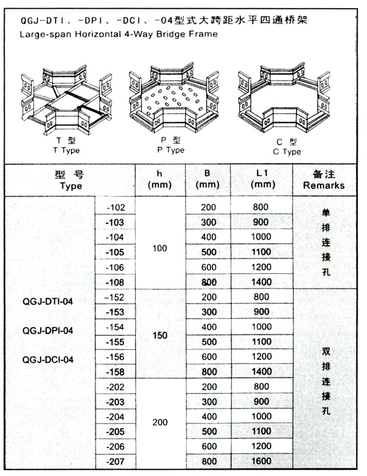 DGJ-DT1、DP1、DC1-04型大跨距水平四通橋架