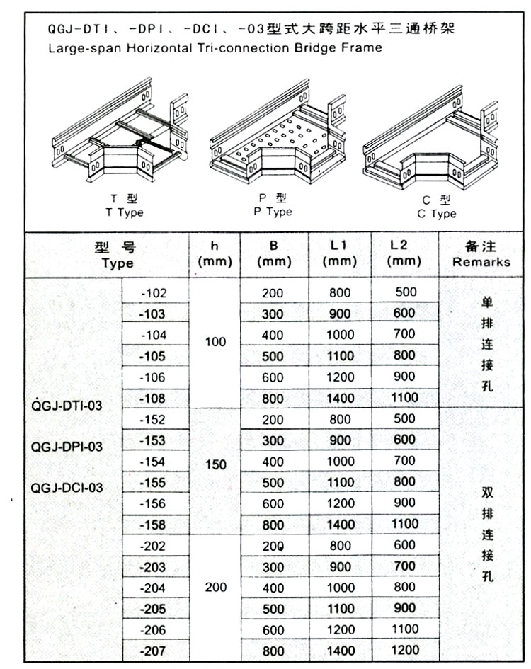 QGJ-DT1、DP1、DC1、03型大跨距水平三通橋架