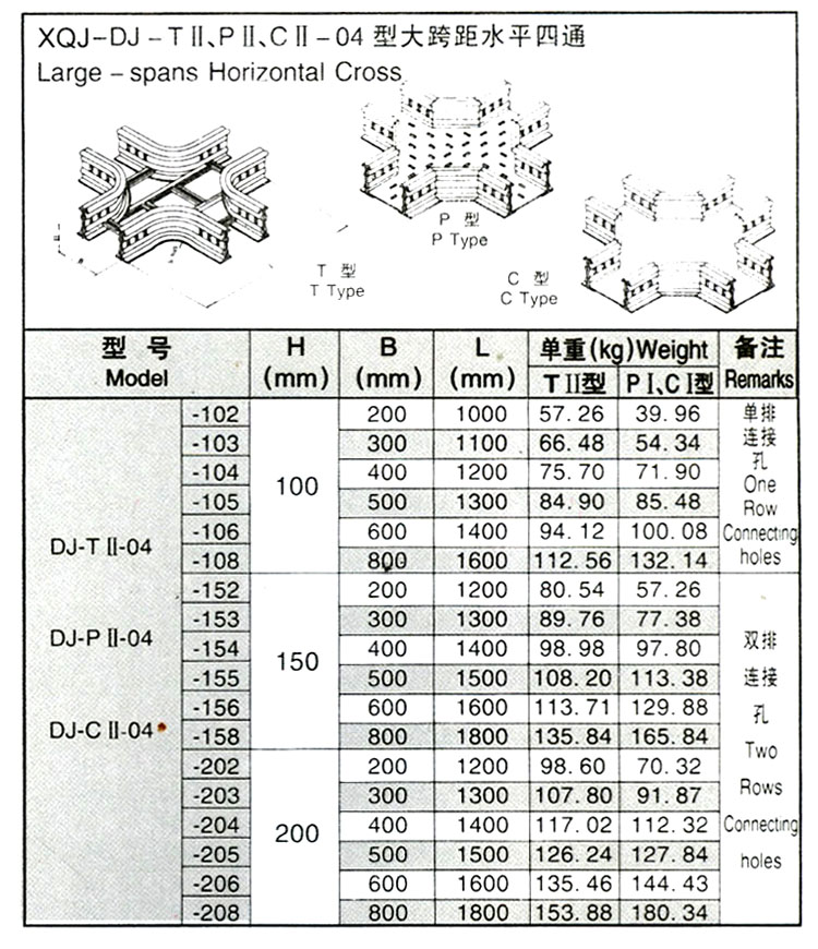 XQJ-DJ-(T、P、C)Ⅱ-04型大跨距水平四通